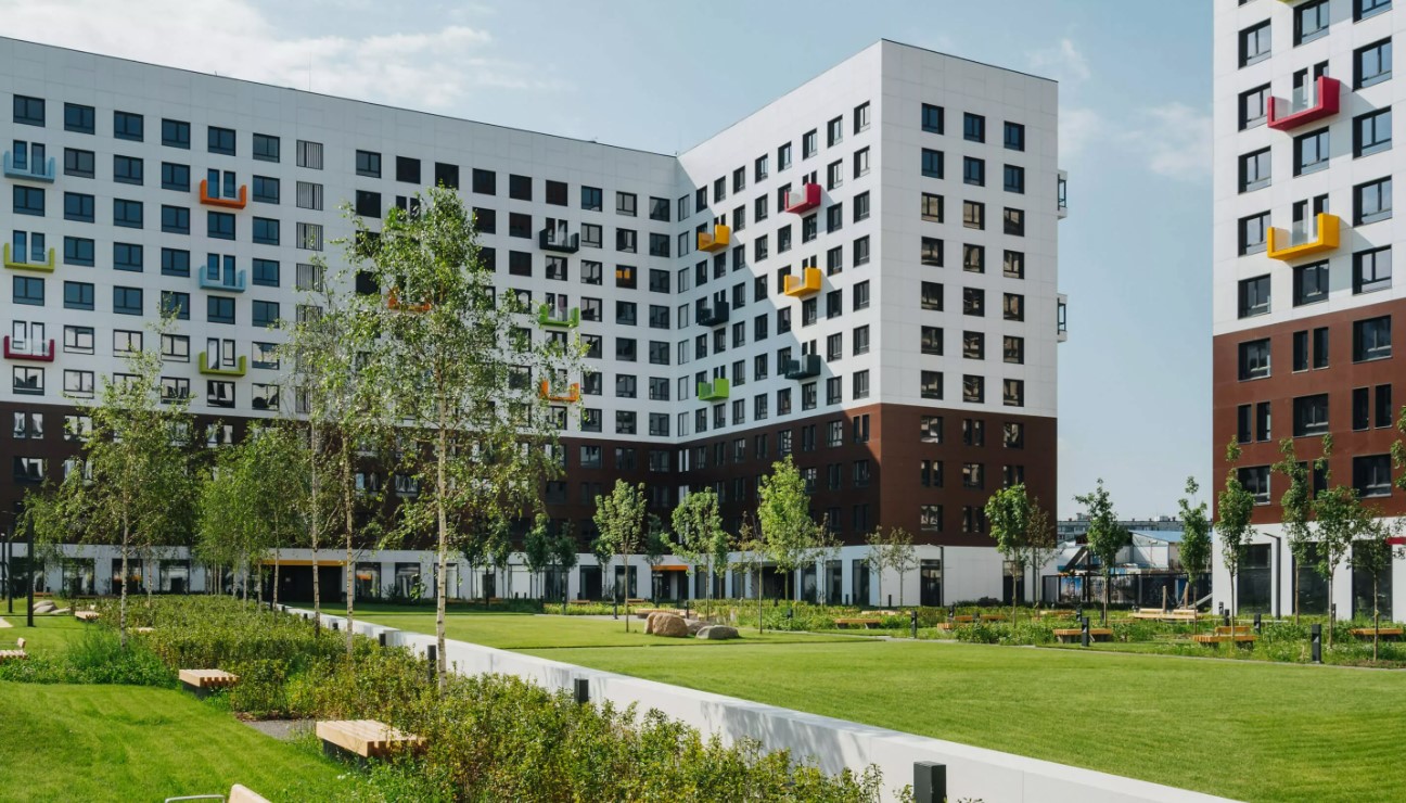 Большой квартал с оригинальной архитектурой в развитом районе Зеленограда.