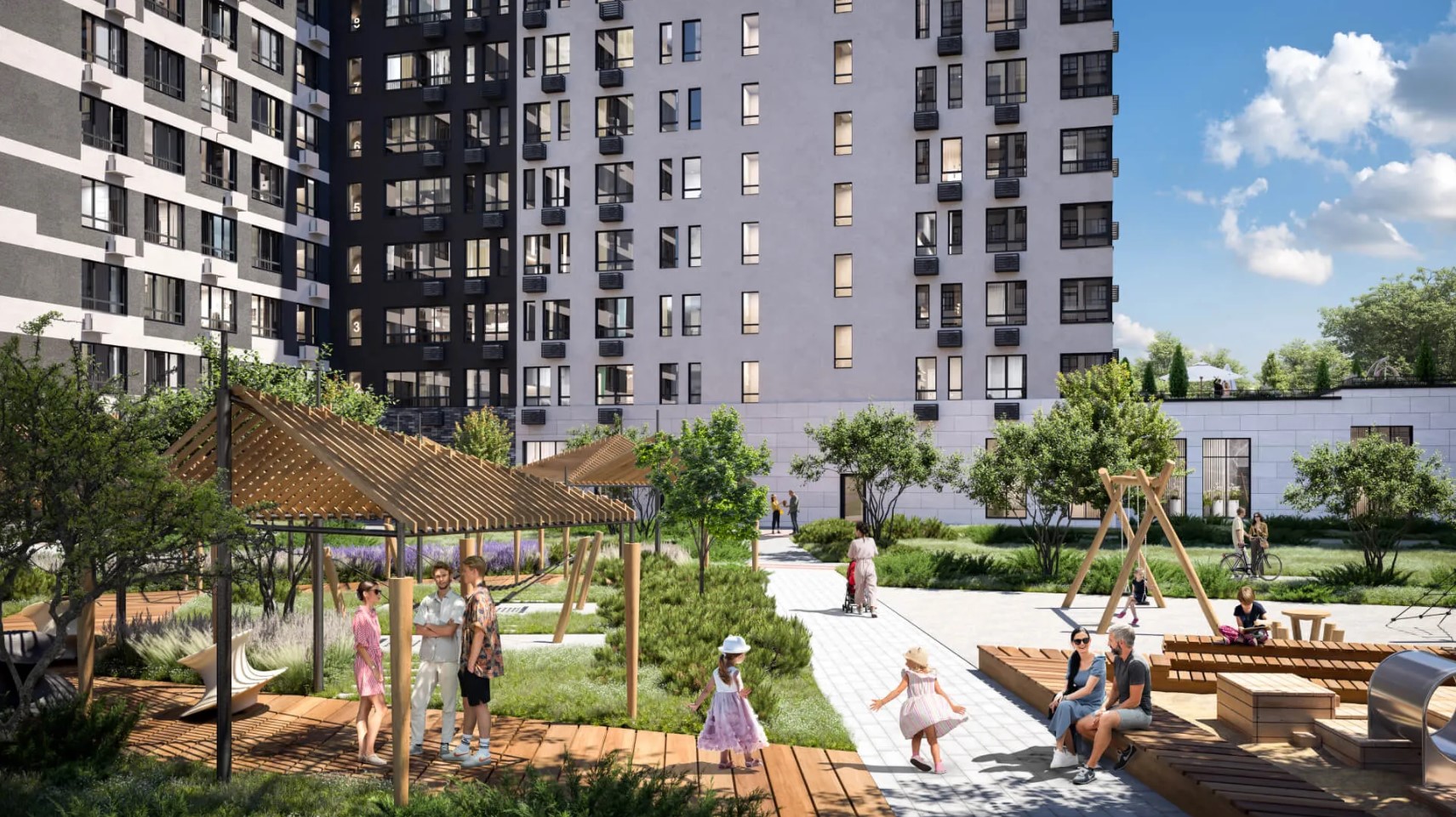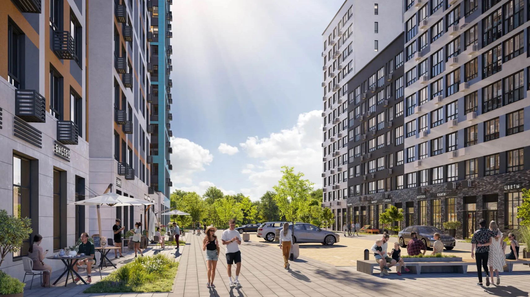 «Парк», самый энергичный и яркий район — придется по душе активным жителям столицы. Именно тут разместится большое количество пространств для спорта и творчества.