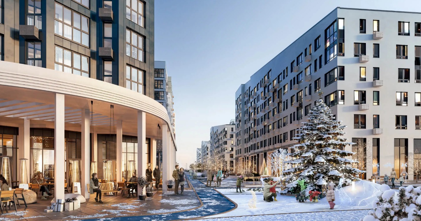 В районе появятся собственная набережная, прогулочная территория в лесу, закрытые и охраняемые дворы, площади, зелёные скверы и пешеходные улицы. Щедрое природное окружение вдохновило на создание уникальных решений по архитектуре и благоустройству.